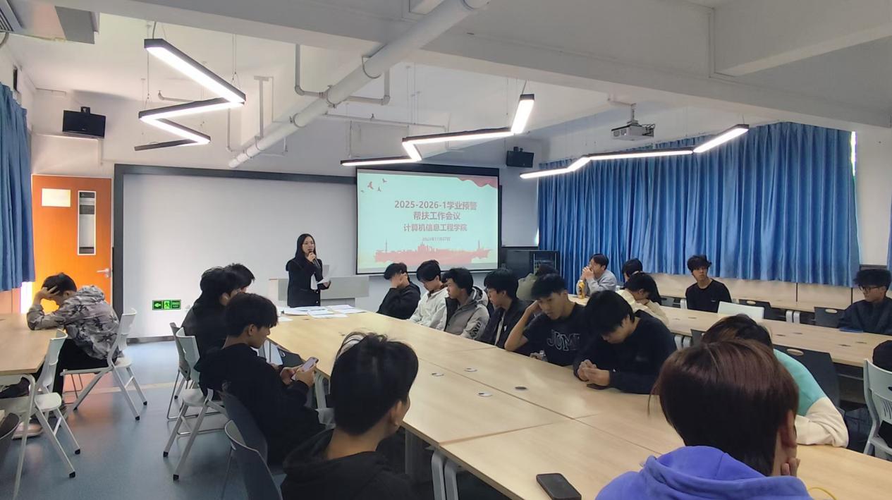 为精准助力学业困难学生筑牢学业基础、重拾学习信心,切实保障人才培养质量,计算机信息工程学院于2025年11月27日召开2025-2026-1学期学业预警帮扶工作会议。会议由教务员黄斯华老师主持,全体学业预警学生参会。