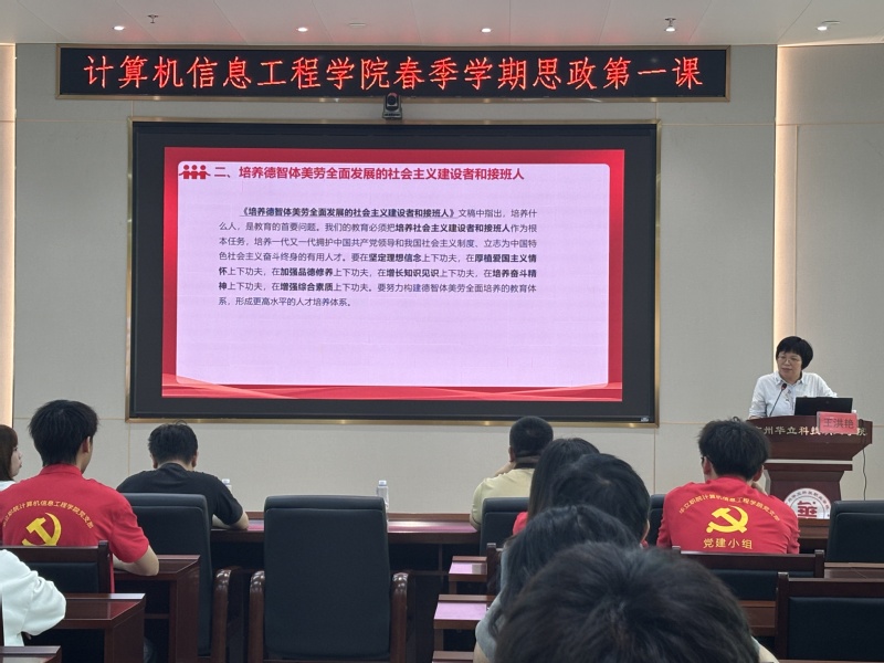 为深入学习贯彻习近平总书记关于青年工作的重要思想,引导广大青年坚定理想信念、勇担时代使命,3月25日下午,在图书馆104会议室,学校党委副书记、副校长王洪艳以“把青春播撒在民族复兴的征程上”为主题,为计算机信息工程学院师生带来一堂主题鲜明、内涵丰富的思政第一课。