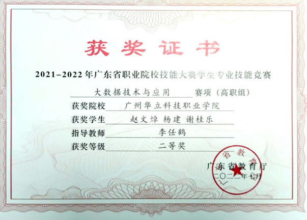 (图10 省职业技能竞赛大数据技术与应用赛项获奖证书)