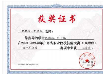 (图11 省职业技能竞赛云计算应用赛项获奖证书)