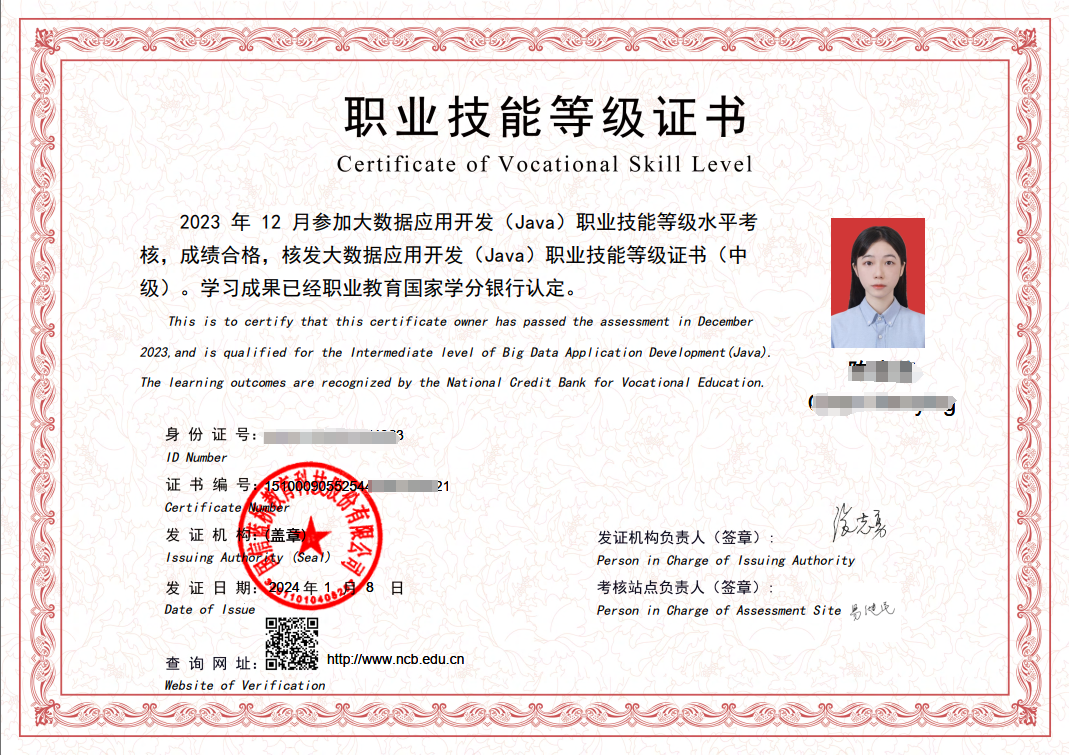 (图13 大数据分析与应用开发(Java)等级证书)