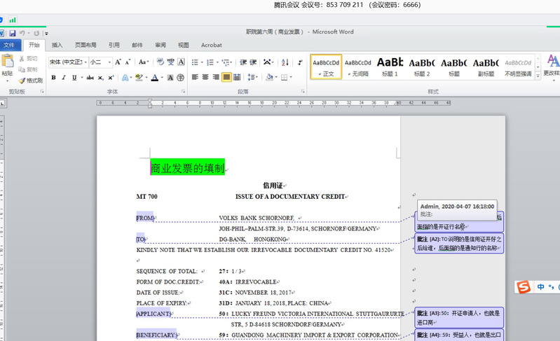 5月22日下午3:30,国际经济与外语学院召开网络教学和全院工作会议,陈茜教学主任通过网络会议召集国贸学院全体教师、系主任参加会议,马林院长还特地邀请了教务处林处长代表学校参加了此次会议,会议由陈茜教学主任主持。这次会议的主题是:总结交流经验,提高网络教学质量,互相学习,取长补短,推进我院网络教学工作上水平,上台阶,为今后网络教学常态化奠定基础。