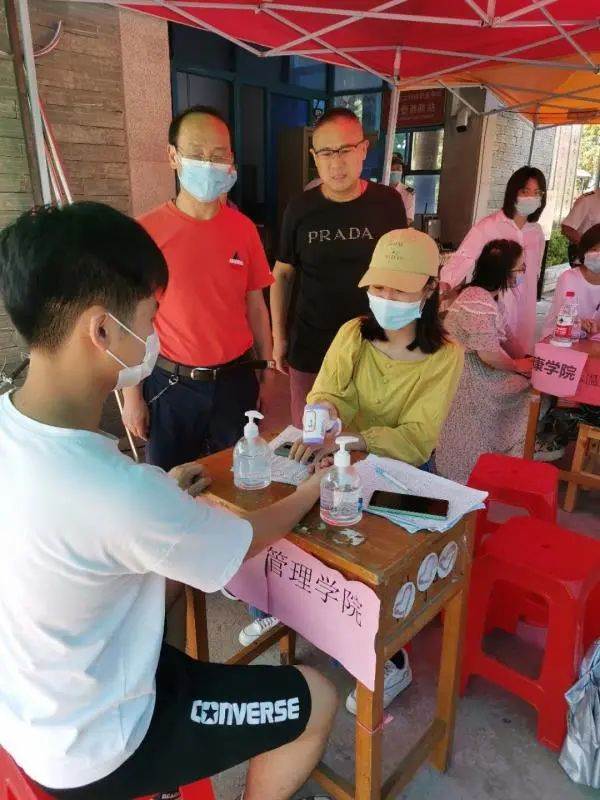 炎炎夏日、骄阳似火,管理学院学生党员勇于奉献、敢为人先,积极参加迎接18级学生返校志愿工作,充分体现了共产党员的担当精神。校门口前实施“一测二核三查四通过”,测量体温、核验身份、查验健康码、符合条件的学生方可通过,整个流程分工明确,顺畅有序。