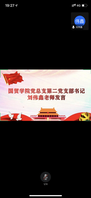 大会第四项:由国贸学院党总支第二党支部书记刘伟鑫老师进行发言。刘伟鑫老师首先向第四届党建小组全体成员表示感谢,同时对新一届的党建小组队长表示祝贺,并希望这五位队长在今后的日子里能延续上一届的拼搏精神,不断开拓创新。不畏惧困难,从容面对即将到来的挑战。努力带领党建小组走向更辉煌的未来。