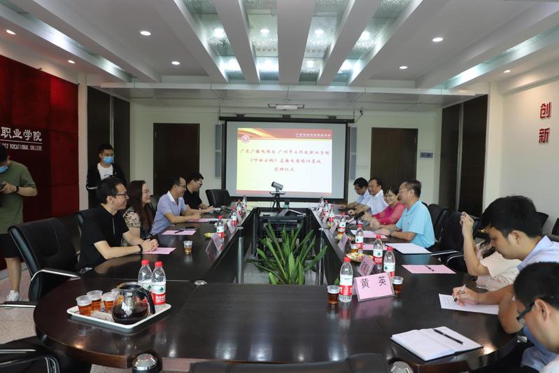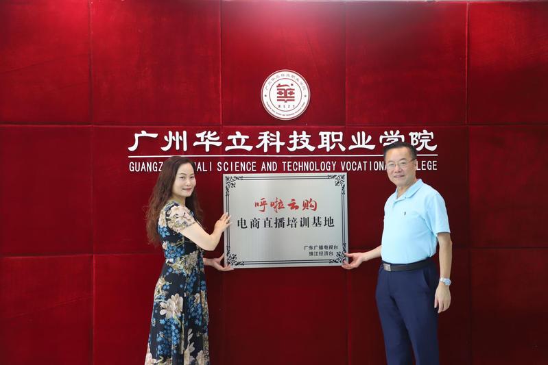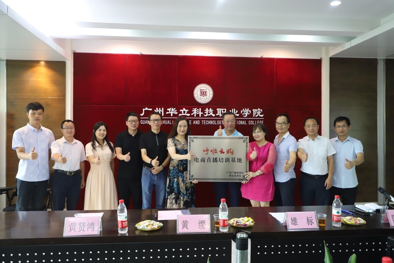 8月19日上午,广州华立科技职业学院与广东广播电视台珠江经济台在行政楼305会议室举行《呼啦云购》直播电商培训基地授牌仪式。学校党委书记林伟健、副校长马俊、办公室副主任李鹏、培训学院副院长陶必芝等出席仪式。管理学院温伟胜院长带领校内教学主任康信恩老师、电商系主任黄英老师参加了此次此次授牌仪式。会议特别邀请了珠江经济台节目中心主管黄缨、《呼啦云购》负责人黄贤鸿、陈子龙。珠江经济台主持人雄标现场主持授牌仪式。