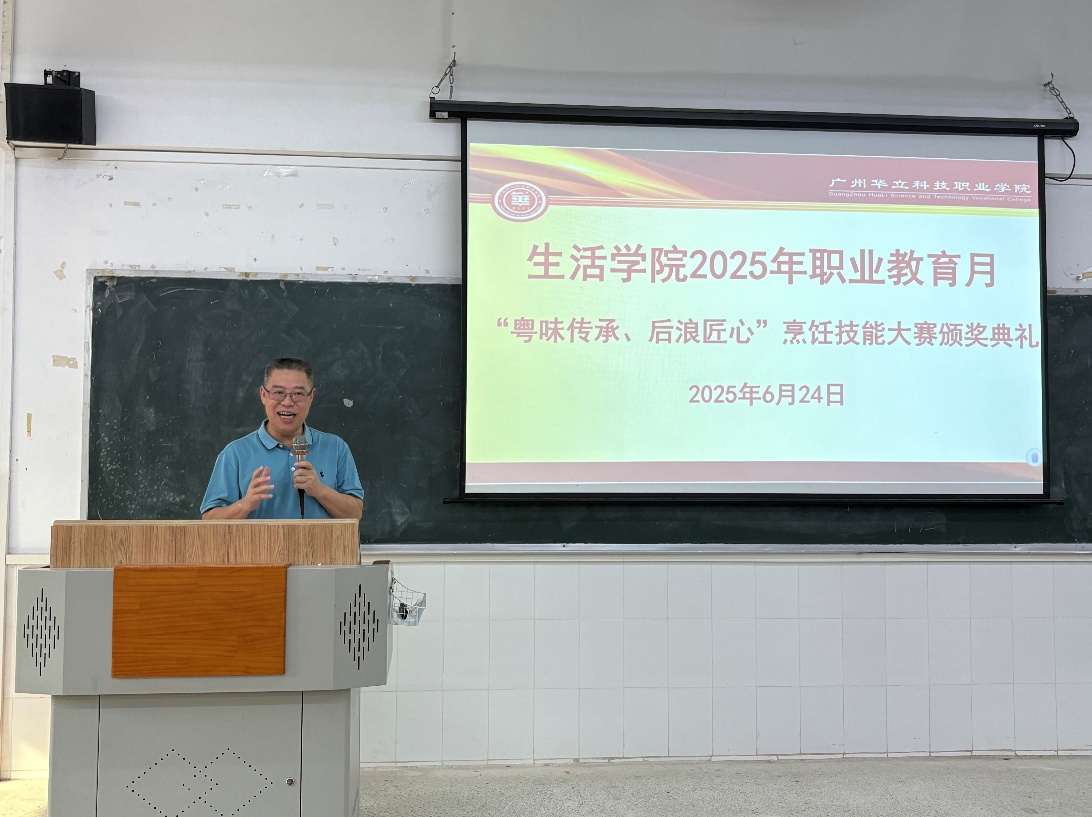 为深入贯彻落实习近平总书记关于职业教育的重要指示精神,广州华立科技职业学院生活学院于2025年6月11日成功举办"粤味传承 后浪匠心"烹饪技能大赛。本次大赛作为职业教育活动周暨劳动教育实践月系列活动的重要组成部分,通过"以赛促学、以赛促教"的方式,全面检验了烹饪工艺与营养专业的教学成果。
