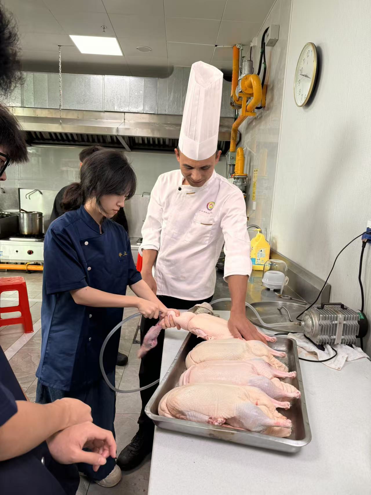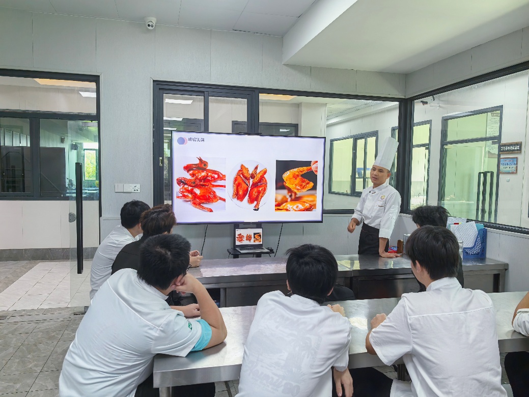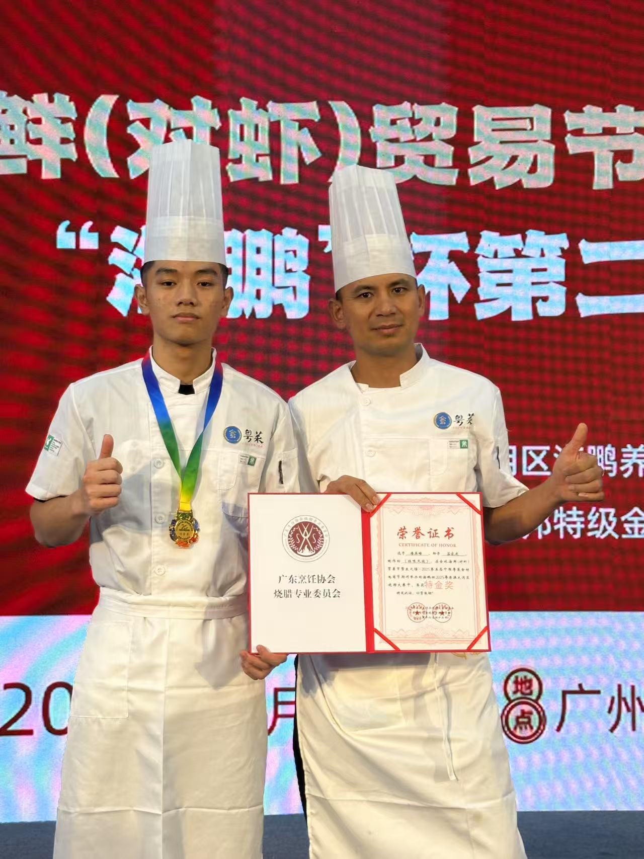 潘英磅作为深耕烹饪教育领域的教师,始终践行“精益求精、传承创新”的育人理念,将烧腊行业前沿技术与传统技艺深度融入课堂,着力培育学生工匠精神与创新意识。潘老师将此次参赛经验转化为教学资源,以真实赛况开展案例教学,创新实施"岗课赛证"综合育人模式,生动诠释了"以赛促教、以赛促学、以赛促改”的育人理念,为培养新时代烹饪工艺领域高素质应用型人才作出积极贡献。
