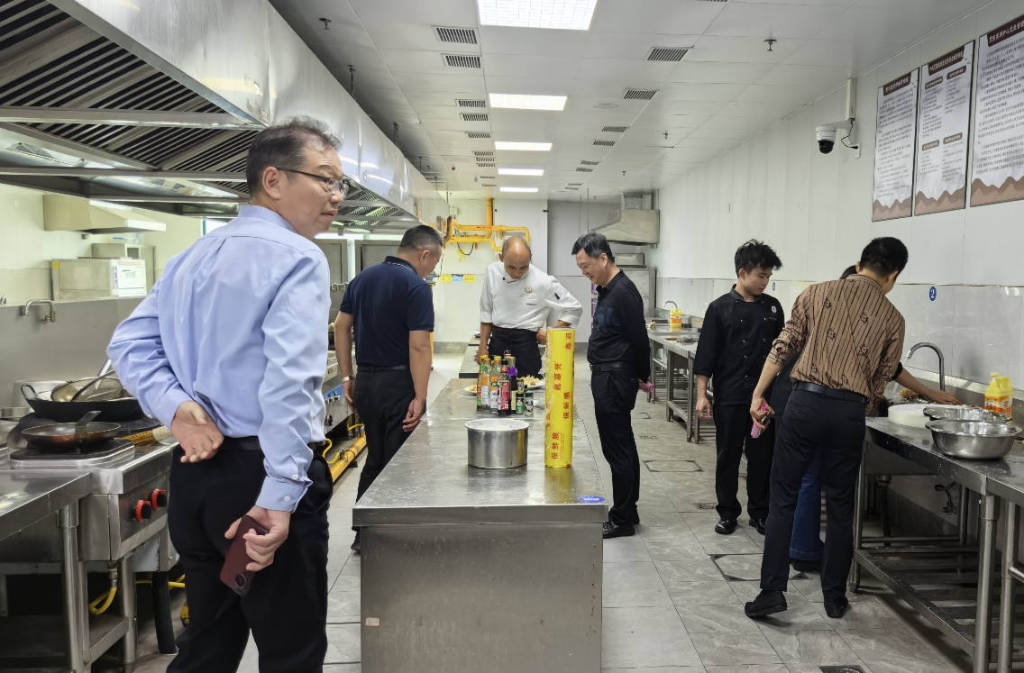 会后,孙文生大师与校领导一同前往我校烹饪实训室考察,孙大师细致查看了实训室的设施设备,观摩了学生的实操训练,并对专业的教学环境与实训条件给予了高度评价。