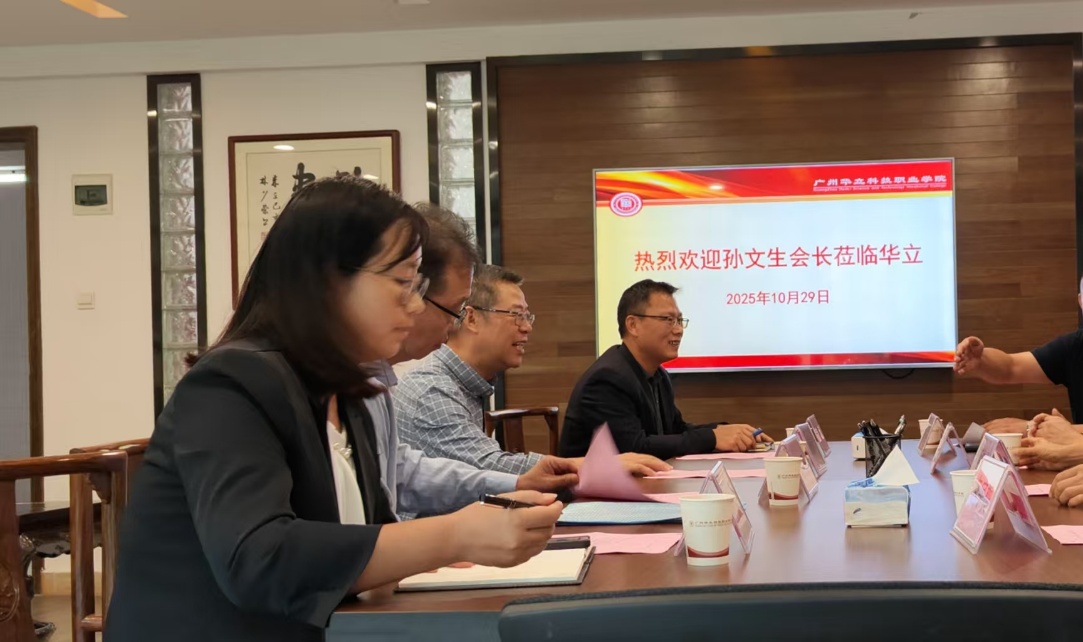 2025年10月29日上午,以“产教融合,技艺传承”为主题的“烹饪大师工作室”建设交流会在广州华立科技职业学院行政楼301会议室成功举办,学校副校长陈显强教授、科研处处长刘兰平教授、校外合作办主任韦建林教授、科研处副科长李贝贝副教授出席活动,生活学院院长李春洪及学院教师代表参加交流。本次会议特邀全国技术能手、国务院特聘专家、国家级潮州菜非遗大师工作室负责人、粤菜师傅五星名厨、烹饪正高、潮州市厨师协会会长孙文生大师亲临我校,与校领导及生活学院教师代表共商烹饪技艺传承与大师工作室建设大计。