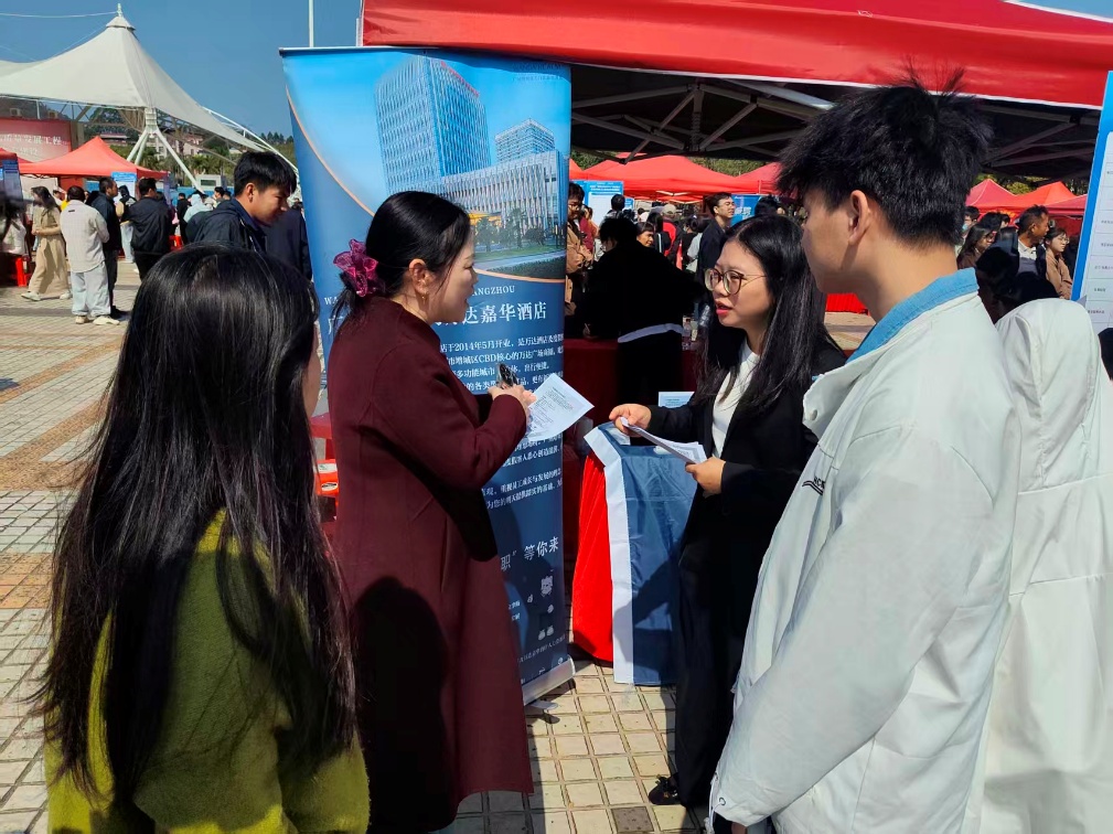 招聘会现场人头攒动,气氛热烈。朱向平副院长一行逐一走访了与学院专业设置高度匹配的重点企业展位,并与企业代表进行了深入细致的交流。此行重点联系了广东京邦达供应链有限公司、明创制造(广州)有限公司、广州增城富力万达嘉华酒店、广州沃夫曼管理有限公司以及广州妙管家家政有限公司等五家知名企业。