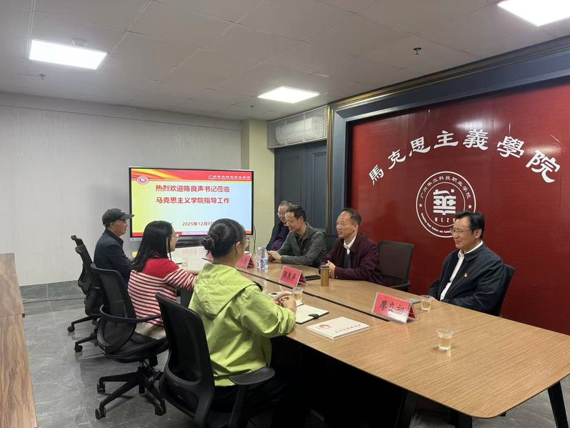 2025年12月9日,学校党委书记陈良声与结对帮扶单位广东机电职业技术学院思政课教学专家季士强博士一行,莅临马克思主义学院调研指导工作。学校党委办公室主任梁德君、校党委组织部副部长陈晓薇、马克思主义学院院长廖良初、副院长伍揆祁、院长助理唐涛等参加。会议由廖良初院长主持。