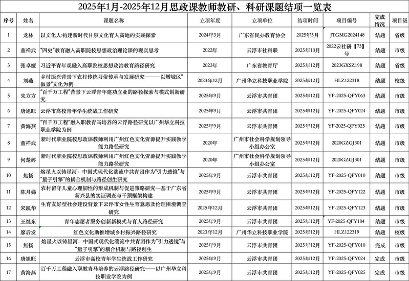 2025年度思政课教师教研、科研课题结项一览表