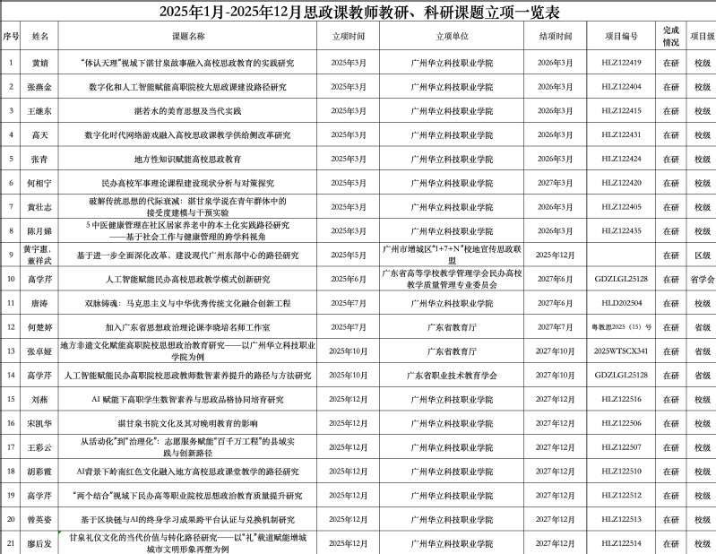 2025年度思政课教师教研、科研课题立项一览表