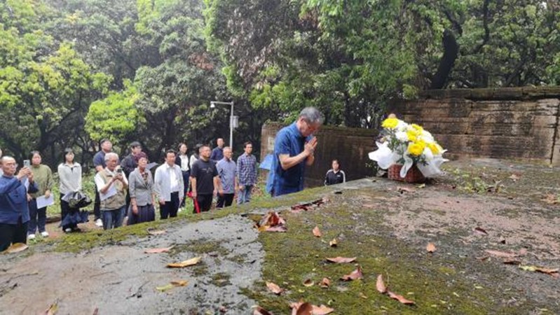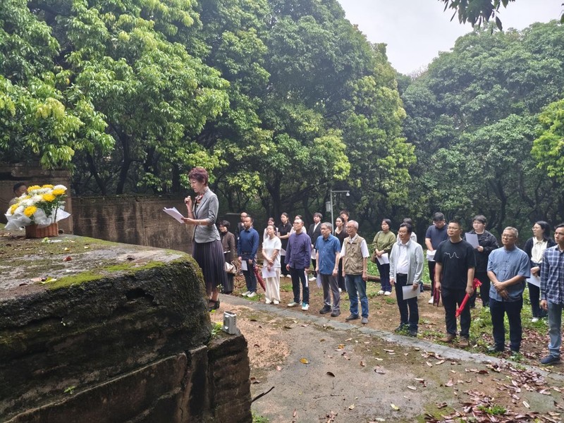 副会长宋婕作为主祭人,恭读祭文,追忆先生“随处体认天理”的治学思想、立德树人的教育情怀与忠勤报国的人生风范。与会人员依次敬献白花,集体诵读湛若水经典篇章,在文脉回响中感悟先贤精神、汲取前行力量。