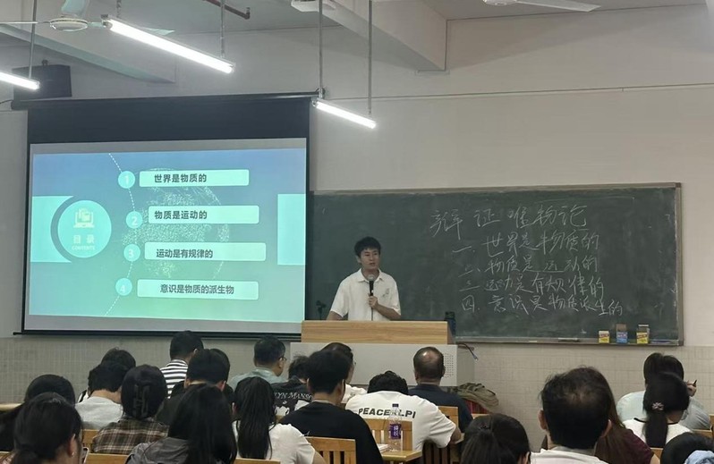 在讲授“世界的物质统一性”重点内容时,谭老师引经据典、脉络清晰,从古代朴素唯物主义的自然观溯源,剖析近代形而上学唯物主义的理论局限,再到马克思主义哲学辩证唯物主义的创立与发展,系统梳理了人类对世界本源问题的探索历程,让学生清晰地把握唯物主义的发展脉络与理论进阶。