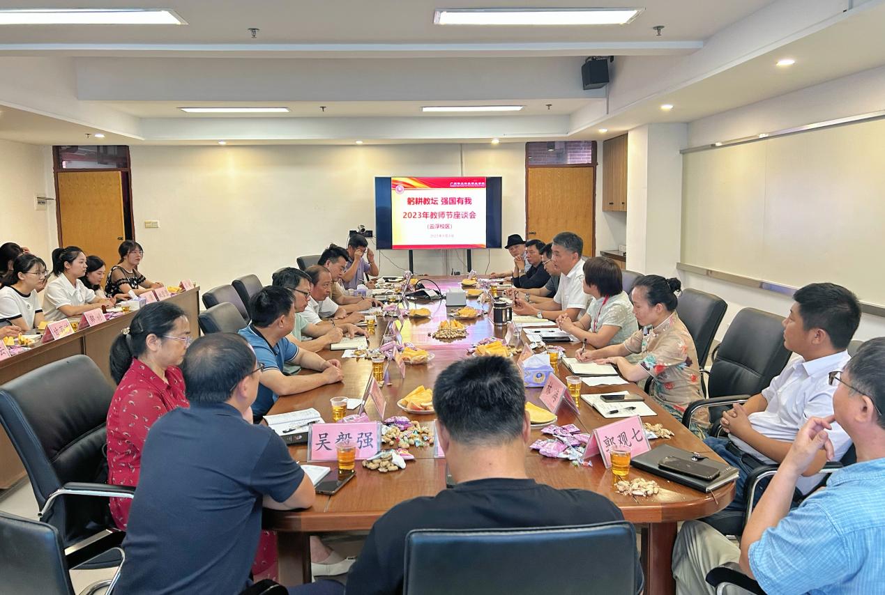 金秋渐入,秋风送爽。2023年9月8日上午,值全国第39个教师节来临之际,广州华立科技职业学院两校区分别召开了教师节座谈会。其中,云浮校区在图书馆7楼会议室召开了教师节座谈会,校区负责人陈德清、副校长王洪艳、校长助理张剑锋、各部门负责人及教师代表参加会议。