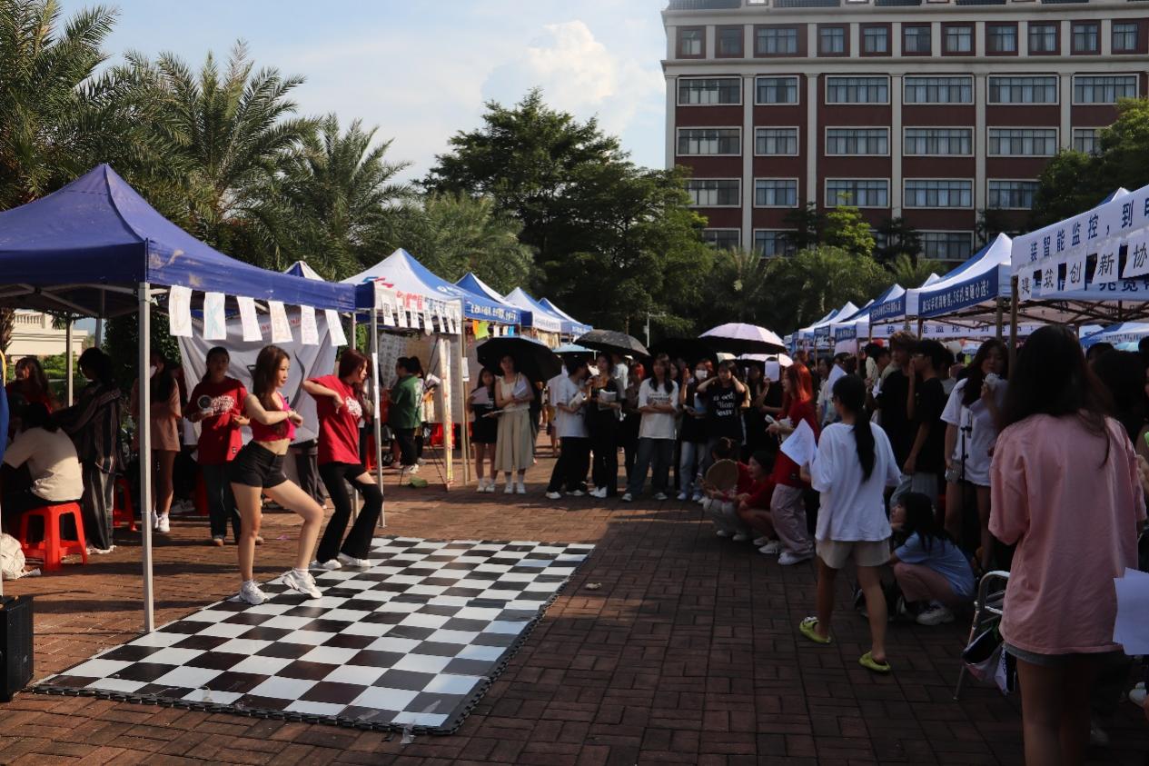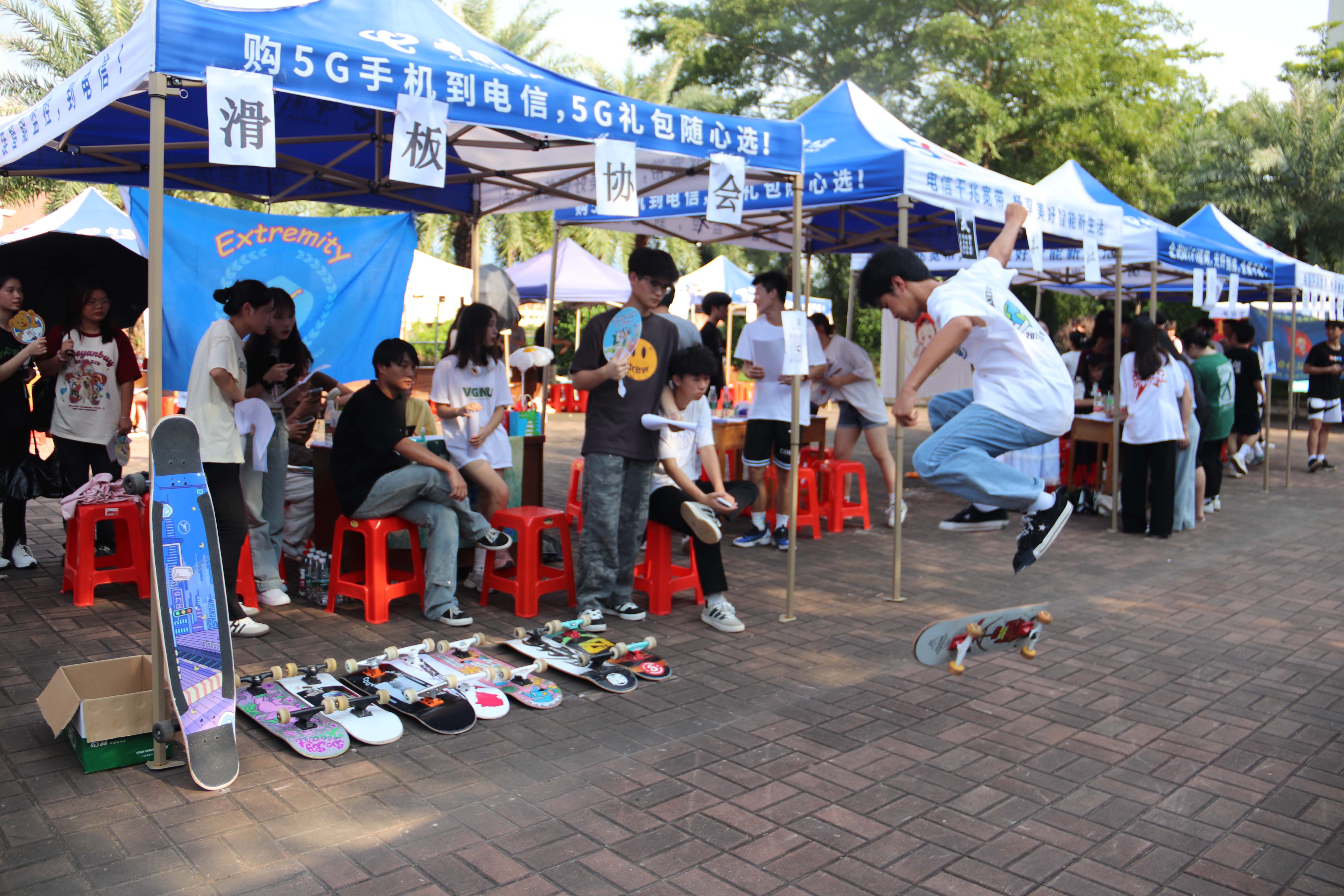 各社团各出奇招,以独特的方式吸引新同学的加入,一个个精彩节目轮番上演。滑板协会在会场中间表演起高难度动作,令人称奇;街舞协会也大显身手,带动了现场氛围,整个会场热闹非凡,人山人海。