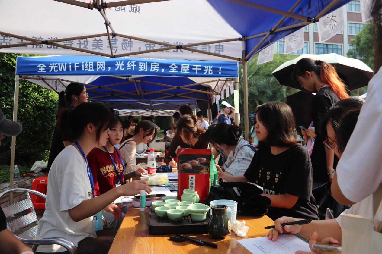 茶艺社通过让新同学品茶从而更好地为他们讲解茶文化。