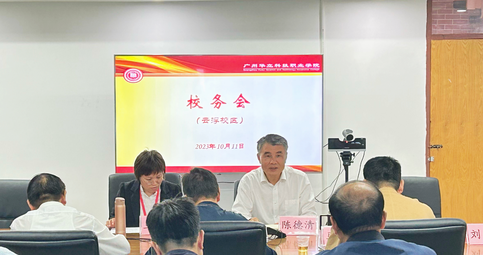 10月11日下午,我校云浮校区在图书馆七楼会议室召开本学期第三次校务会。校领导,各职能部门、二级学院负责人及有关重点岗位人员参加会议。会议由云浮校区负责人陈德清校长主持。