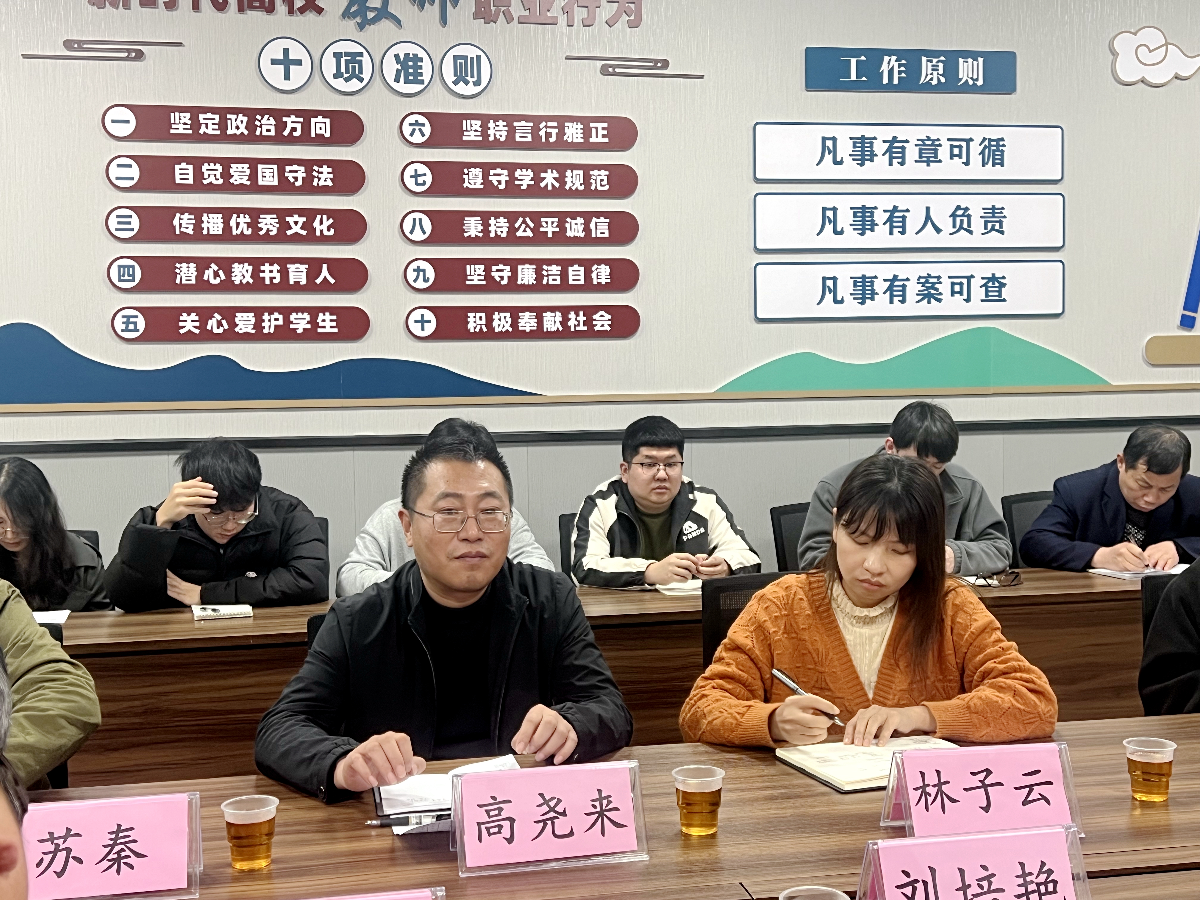 最后,高尧来作总结讲话,他表示,十年后又回到云浮校区工作,感到华立变得更美了!他就学院建设与发展提出四点要求:一是要认真学习总书记新质生产力理论,打造学院特色高质量发展;二是要加强团队建设,老教师发挥“传帮带”作用,年轻教师虚心学习,形成合力推动学院各项工作顺利开展;三是要团结协作,营造良好工作氛围。同事之间要相互“搭台”,相互支持,共同发展;四是要加强师德师风建设,做四有好教师,做学生的榜样,做学生的良师益友。