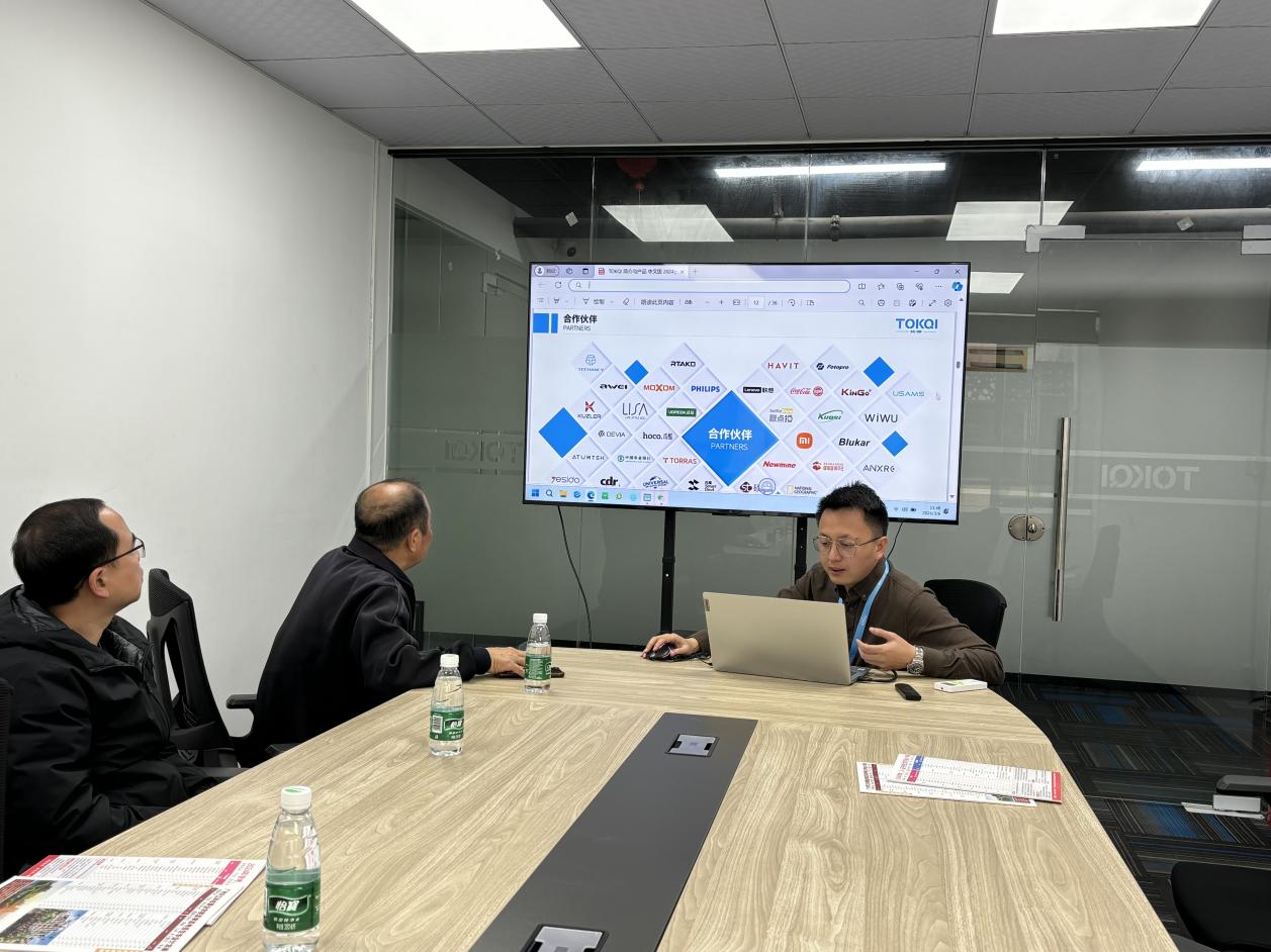 在深圳市拓骐科技集团有限公司座谈会上,叶坤明总经理详细介绍了企业发展历程、企业核心技术和企业文化、所需人才等情况。校企双方均表示日后需多加交流,寻找合作机会。