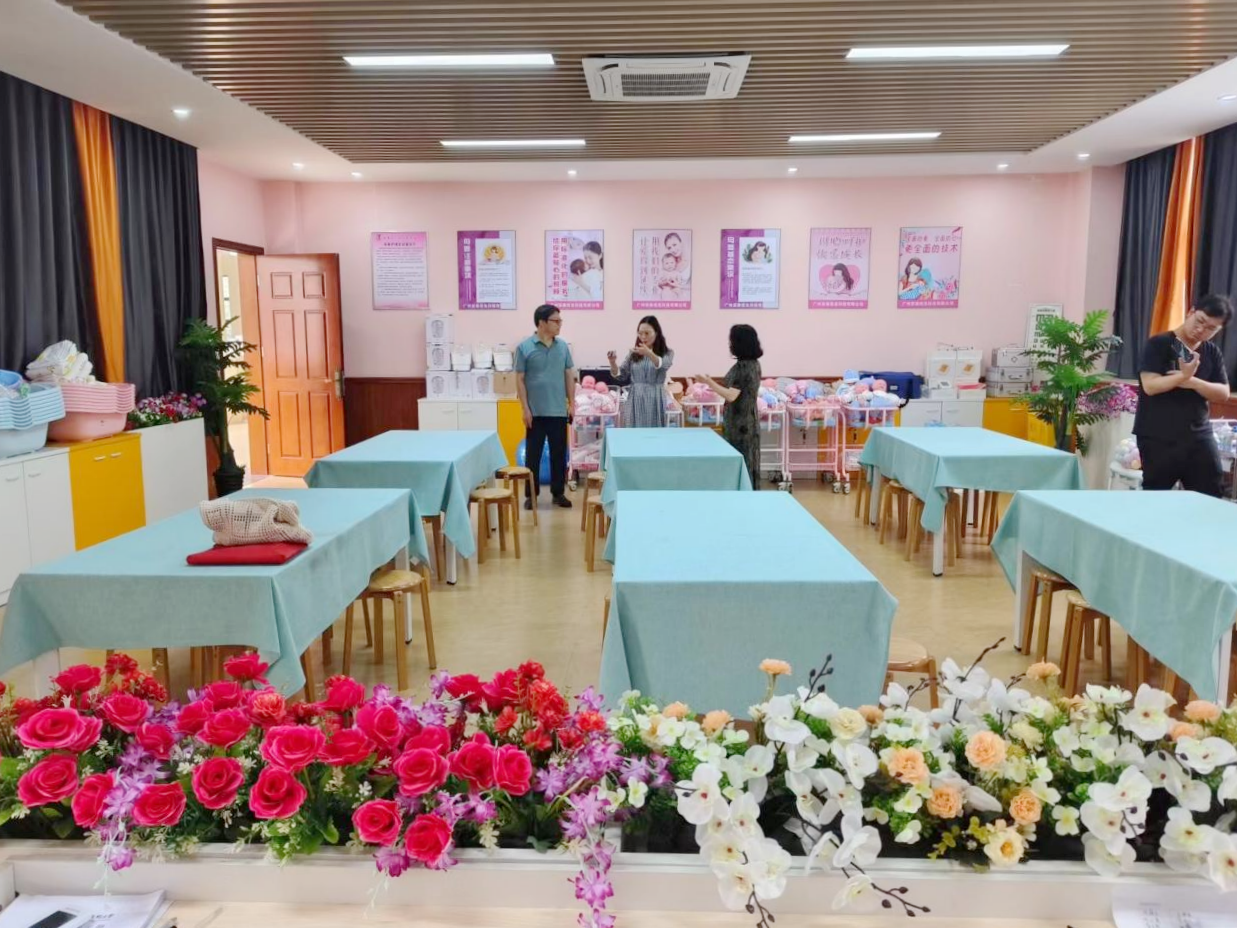 广东工商职业技术大学健康学院副院长谢丽仪热情接待并详细介绍了广东工商家政专业实训室的建设情况。刘军根一行在谢丽仪的陪同下,先后参观了该校居家服务实训室、智慧养老实训室、中医保健实训室、母婴实训室、医疗护理室和家政礼仪实训室等,详细了解各个实训室的配置与功能。