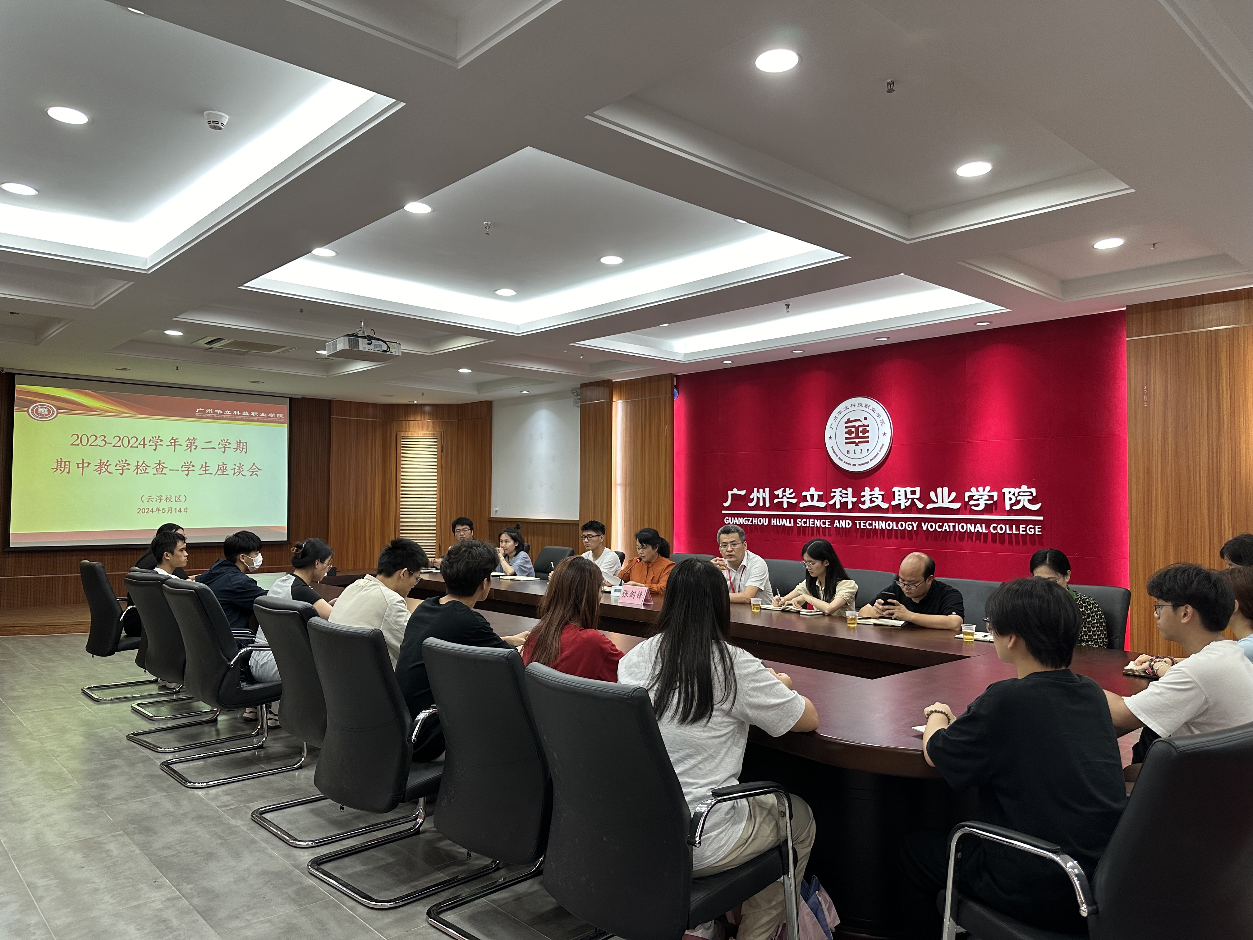 为加强教学过程管理,了解学生学习的意见和建议,及时发现教学工作中存在的问题,提高教学质量,根据学校《关于开展2023-2024第二学期期中教学检查的通知》,5月14日,我校云浮校区教务处在图书馆一楼会议室召开本学期期中教学检查学生座谈会。校长助理张剑锋出席会议并讲话。教务处处长吴青峰,教务处、实训中心、各二级学院学生代表参加,会议由吴青峰主持。