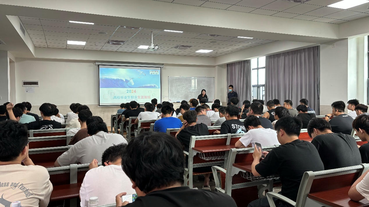 华通电脑(惠州)有限公司人事部科长史真智详细讲解了企业的前沿技术、行业发展趋势以及公司对人才的需求等。互动环节中,学生们就自己的职业规划和行业选择等问题向史科长进行了提问。史科长则耐心地解答了学生们的问题,并鼓励他们积极面对未来的职业挑战。