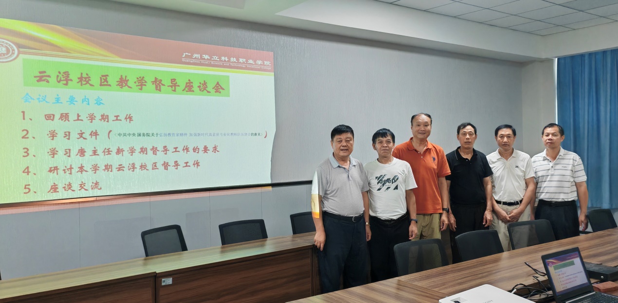 会议主要围绕上学期督导工作回顾、学习中共中央国务院“关于弘扬教育家精神,加强新时代高素质专业化教师队伍建设的意见”、学习唐主任新学期督导工作的要求、研讨本学期云浮校区督导工作等四个议题开展学习、座谈,并为新学期做好督导工作统一思想、协调好行动作工作部署。