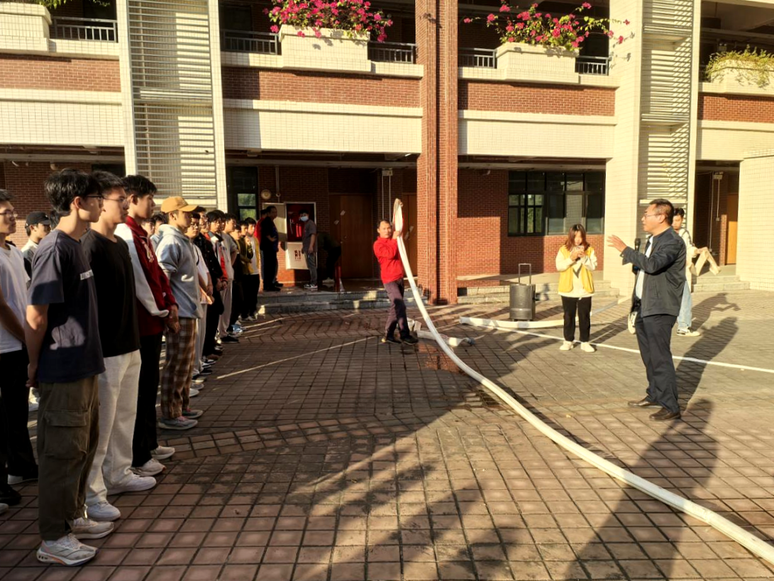 演练实操活动前,高尧来副校长作动员讲话。他首先强调了消防安全的重要性,指出在119消防宣传月期间举办此类活动的意义,并鼓励大家认真学习消防知识,掌握正确的逃生和自救技能。