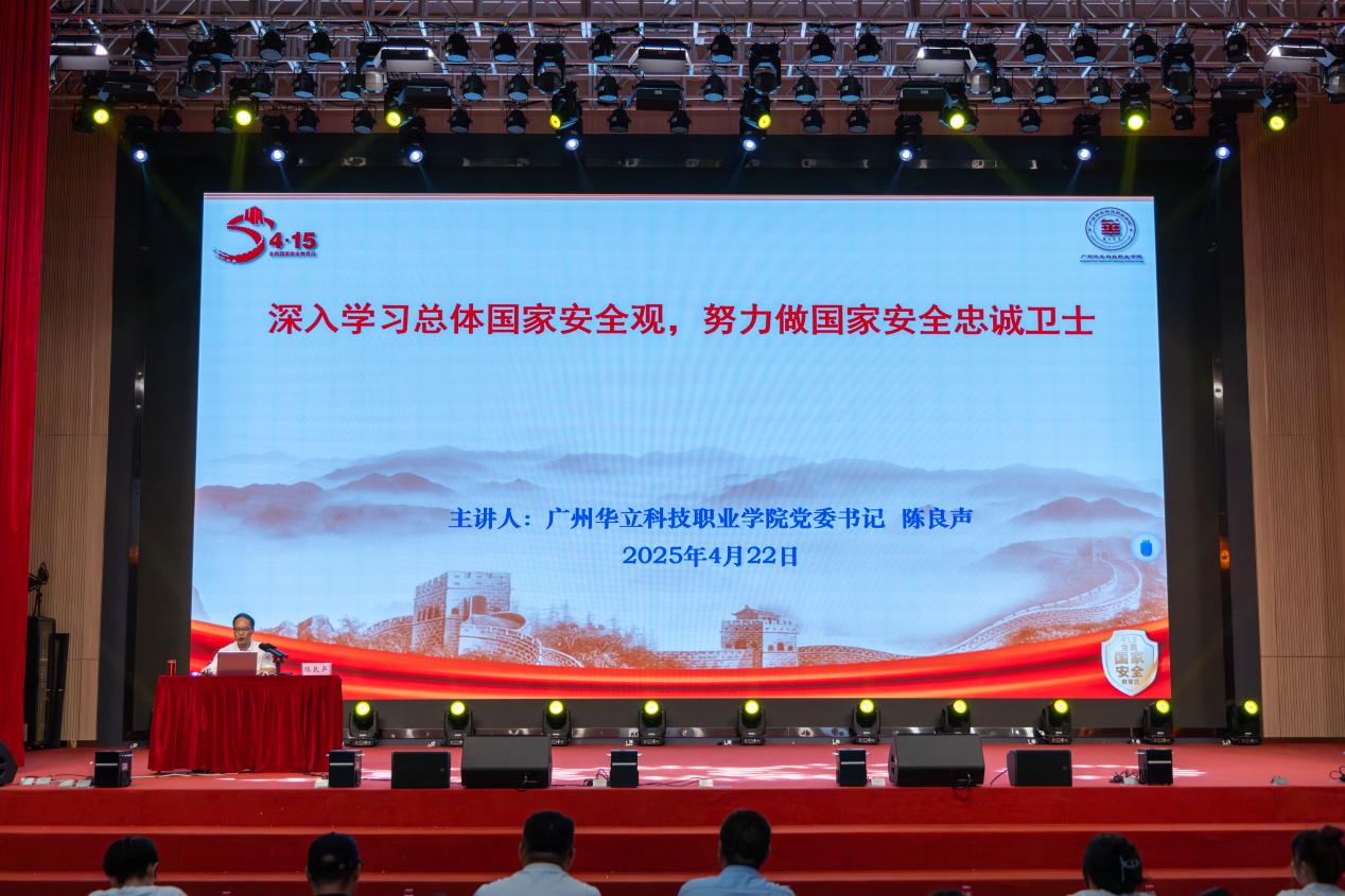 今年是4·15全民国家安全教育日实施10周年,为贯彻落实习近平总书记关于加强国家安全教育的重要指示,引导广大青年多维度领悟总体国家安全观的重要论述,进一步增强师生的国家安全意识422日下午学校党委书记陈良声同志以“深入学习总体国家安全观,努力做国家安全忠诚卫士”为题,在云浮校区文体楼八楼为校区师生带来了一场意义深远的国家安全教育专题讲座。学校党委副书记、副校长高尧来主持讲座,云浮校区各职能部门、二级学院师生代表参加听课。