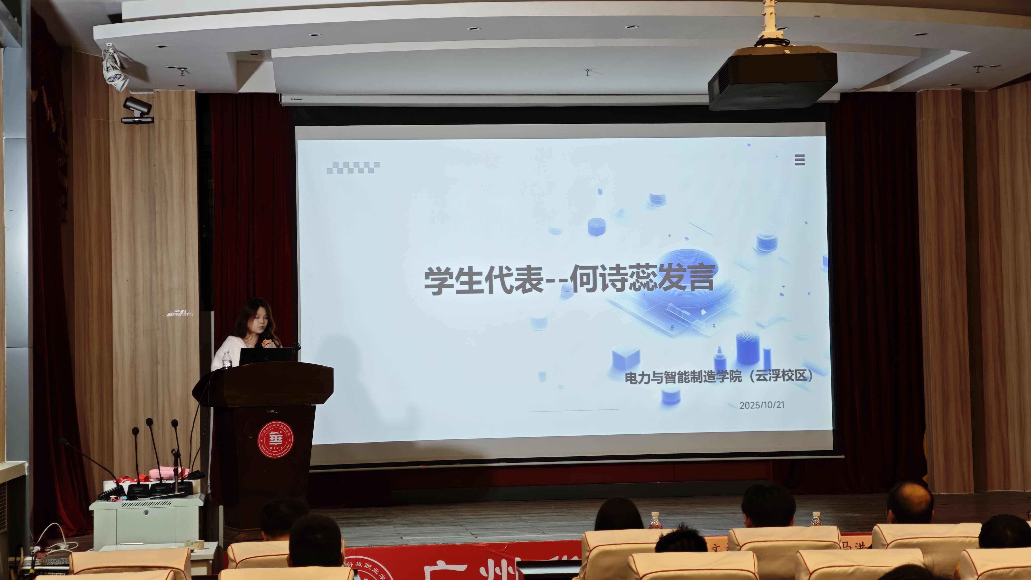 在经验分享环节,获奖学生代表何诗蕊登台分享了参与多项技能竞赛的心路历程与收获。她结合自身从知识积累、团队协作到攻克难题、实现成长的经历,生动展现了我校“竞赛育人”的成效,为同学们树立了学习榜样,激发了大家的参与热情。