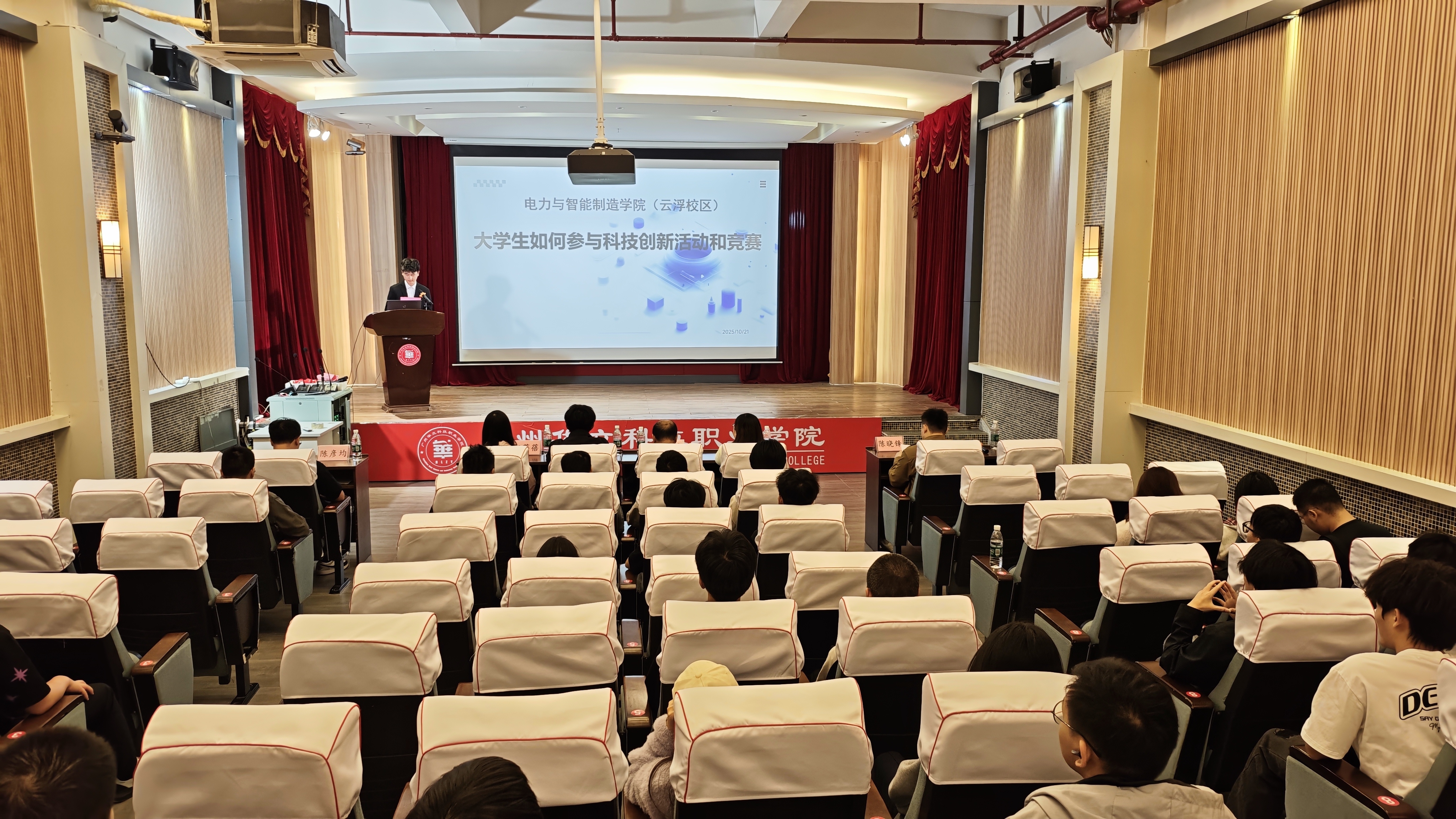 为积极响应国家创新驱动发展战略,适应新时代职业教育高质量发展的需要,深入践行学校“以赛促学、以赛促教、以赛促创”的育人理念,10月21日晚,广州华立科技职业学院云浮校区电力与智能制造学院成功举办“大学生如何参与科技创新活动和竞赛”的专题活动。本次活动吸引了80余名师生参与,为学院科技创新氛围注入了新的活力。