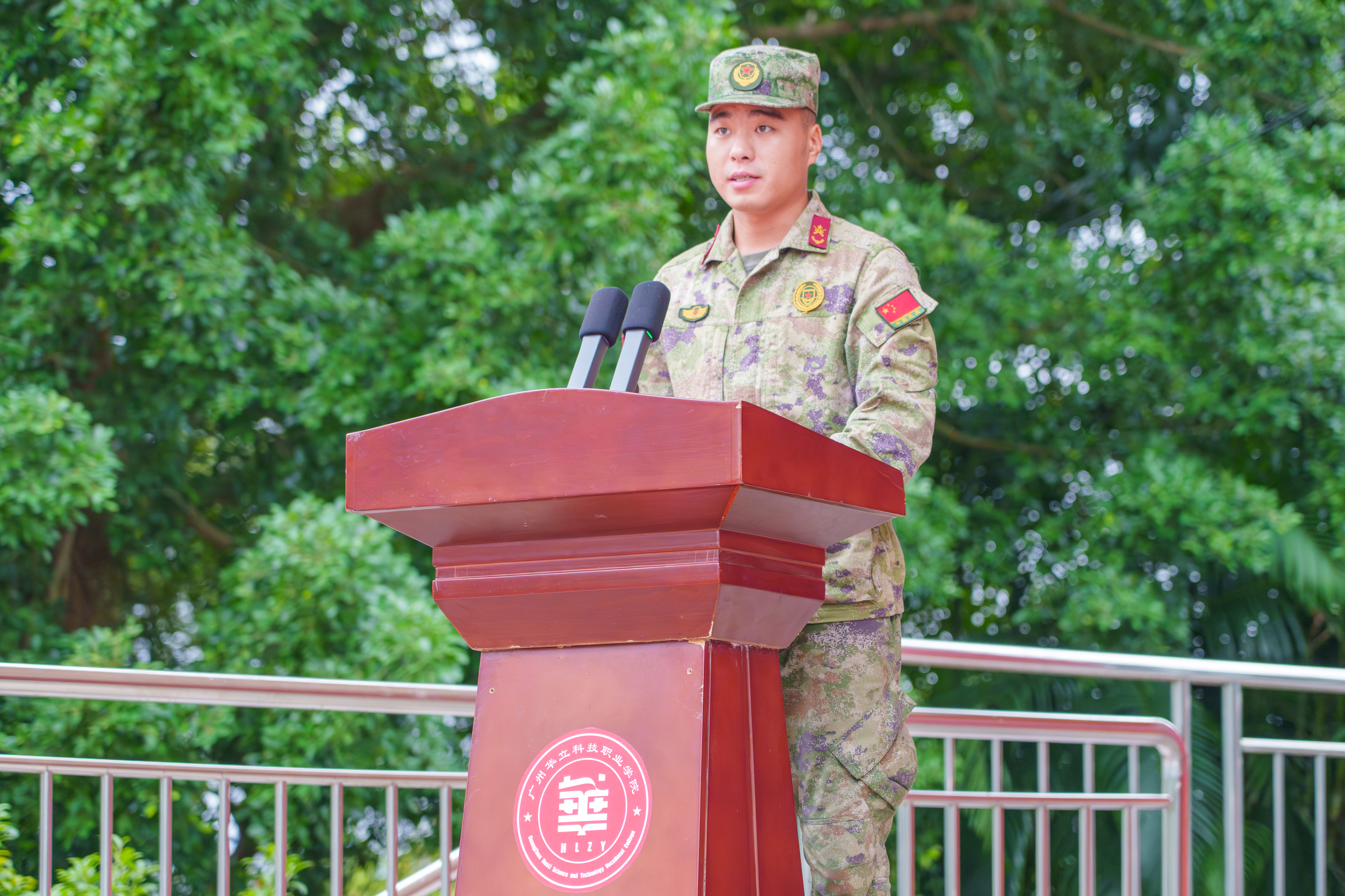 随后,广州市增城区人民武装部军训团团长张韧作军训动员讲话。他阐述了大学生参加军事训练的重要意义,指出军训是国防教育的重要组成部分,是增强国防观念、培养集体主义精神和纪律意识的实践课堂。张团长要求全体承训教官要科学组训、树立榜样、文明施教、严格管理。同时,他也对参训新生提出了明确要求:要服从命令、听从指挥,敢于吃苦,发扬集体精神,以优异的训练成果展现新时代大学生的风采。