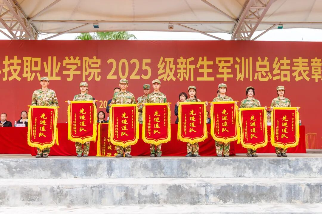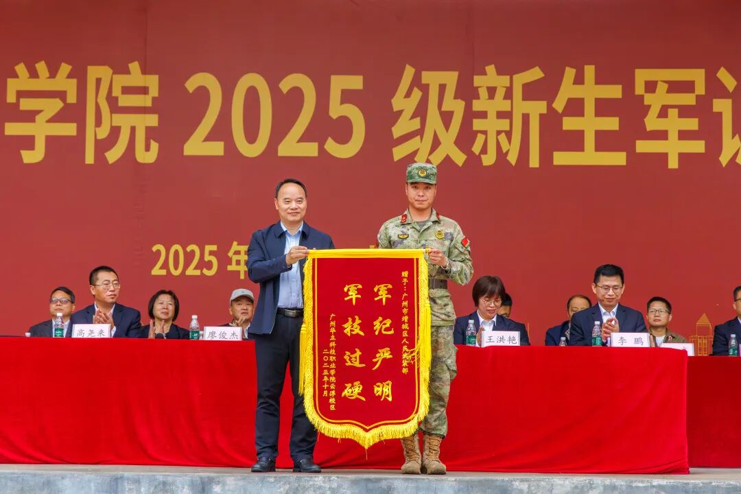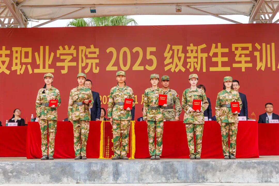 汇演结束后,学校党委副书记、副校长王洪艳宣读了《广州华立科技职业学院关于表彰2025级新生军训先进连队、优秀教官、优秀军训生的决定》。在激昂的颁奖进行曲中,主席台领导为获奖的先进连队代表、优秀教官和优秀军训生代表颁发了荣誉证书,充分肯定了他们在军训期间的优异表现。