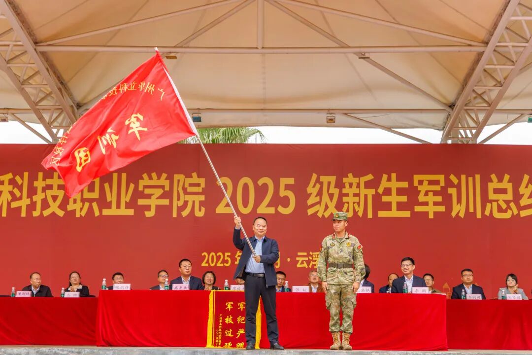 11月6日清晨,广州华立科技职业学院云浮校区田径场上气氛庄重而热烈,2025级新生军训总结表彰大会(云浮校区)在此隆重举行。校领导廖俊杰、高尧来、王洪艳、张剑锋、李鹏,相关职能部门及二级学院负责人、全体承训教官、辅导员与2025级全体新生共同见证了这一庄严时刻。大会由学校党委委员、校长助理张剑锋主持。