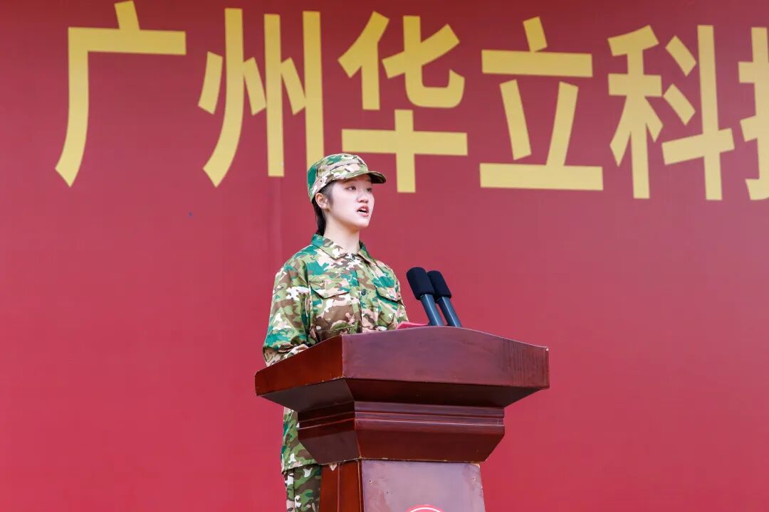 优秀军训生代表、经管学院2025级商英专业学生彭金漫分享了军训期间的成长与感悟,表达了对教官、老师及学校的感谢,并号召全体新生将军训中锤炼的意志品质带入今后的学习生活中,不负青春、不负韶华。