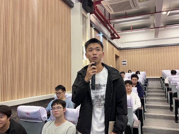 随后,卢赛虎部长以提问引发同学们思考:“大家认为‘矿’是什么?生活中见过哪些矿?”问题抛出后,现场学子踊跃举手发言。“我见过铁矿,是黑色的石块!”“煤炭算不算矿?”面对同学们的回答,卢部长逐一点评,从专业角度给出“矿”的定义,并列举了金属矿、非金属矿、能源矿等常见矿产类型,结合广东本地的矿产资源分布实例,让同学们对“矿”有了系统认知。互动中,同学们积极提问,从行业就业前景到专业学习难点,卢部长耐心解答,现场氛围热烈,掌声不断。
