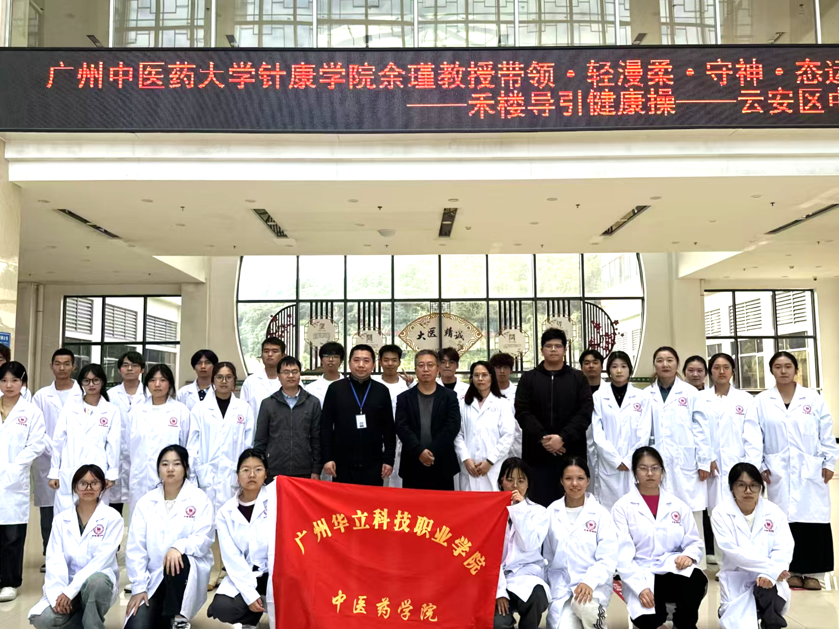 为传承中医智慧,提升师生健康素养,推动传统中医养生文化融入校园生活,2025年11月21日,中医药学院副院长陈耀辉带领师生代表,前往云安区中医院开展“禾楼导引健康操”主题交流学习活动。