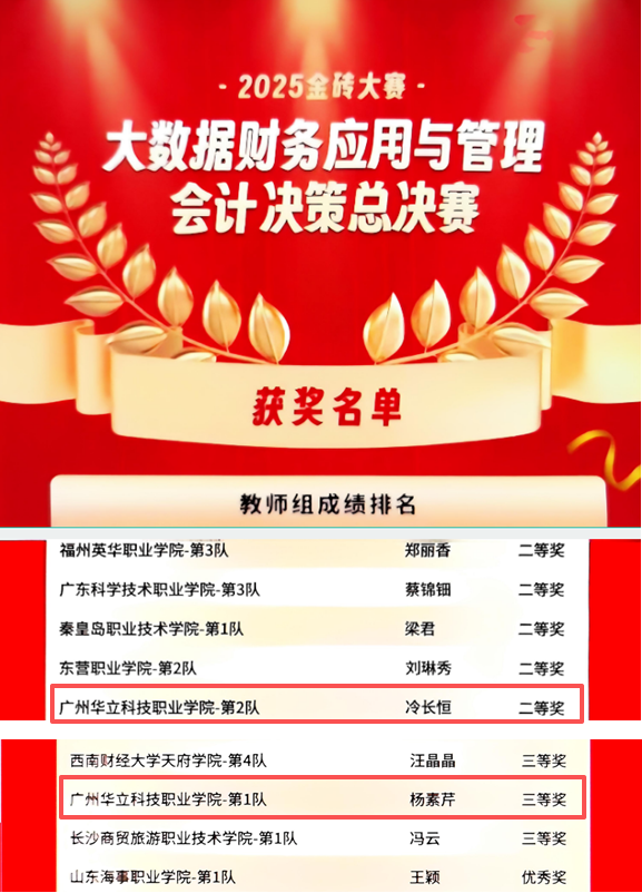 2025年11月23日,一带一路暨金砖国家技能发展与技术创新大赛“大数据财务应用与管理会计决策赛项”全国总决赛圆满落幕。本次总决赛汇聚了来自全国554所院校的625支晋级队伍,参赛规模创历史新高。我校经济管理学院高度重视此次赛事,特选派冷长恒等四位老师参加初赛,初赛晋级的冷长恒、杨素芹两支教师代表队参加了全国总决赛,经过激烈角逐,两支队伍脱颖而出,分别斩获二等奖、三等奖。