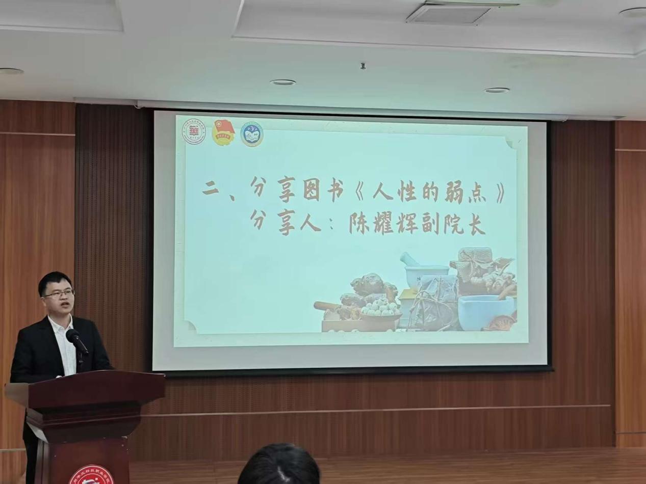活动伊始,副院长陈耀辉围绕《人性的弱点》中的三个重点“不要责备或抱怨、学会倾听、真诚地赞美他人”展开分享,并强调,作为中医药从业者,医术是根基,而人际沟通则是桥梁。