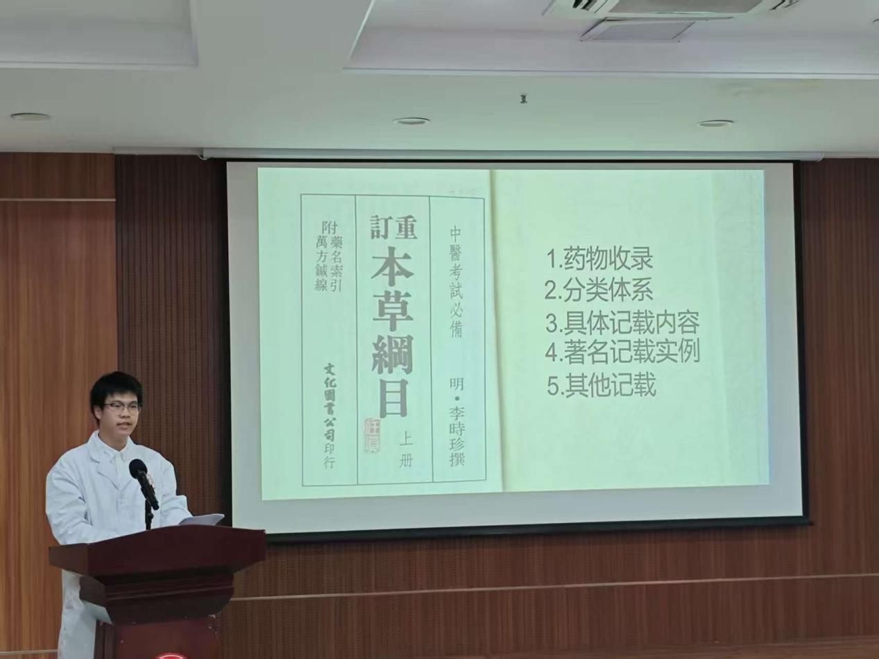 陶醌宇同学带来的《本草纲目》使中医学子能更深入地了解中药的世界,为今后的临床用药打下坚实的基础。
