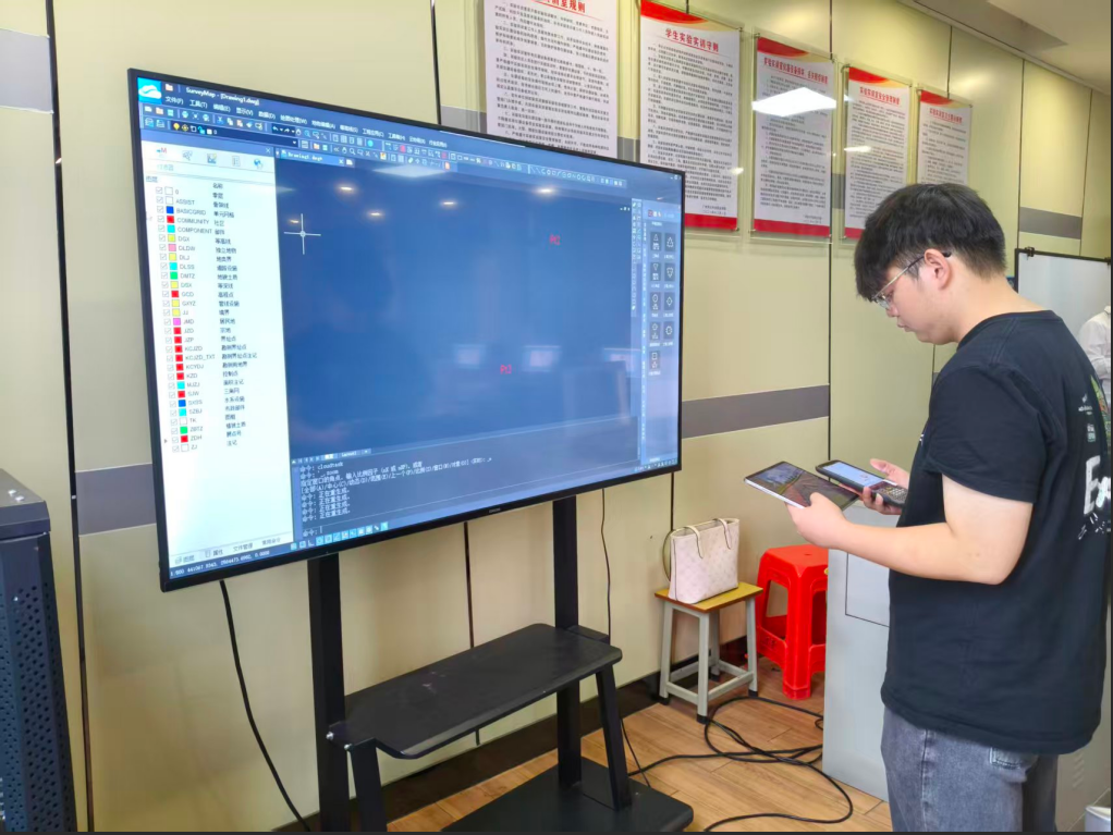 培训现场,企业技术讲师围绕云协同软件的核心功能模块展开系统教学,从认知学习模块的理论夯实,到坐标测量模块的全流程实操,再到数据协同处理的实战演练,形成了循序渐进的培训体系。通过 1:1 还原的虚拟测绘场景,学生们在安全可控的环境中体验了从设备安置、参数设置、数据采集到成果分析的完整工作流,智能引导系统实时纠错、评分功能即时反馈,有效破解了传统测绘教学中设备成本高、实操风险大、时空限制多的痛点。
