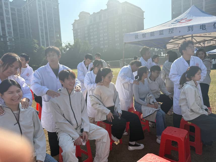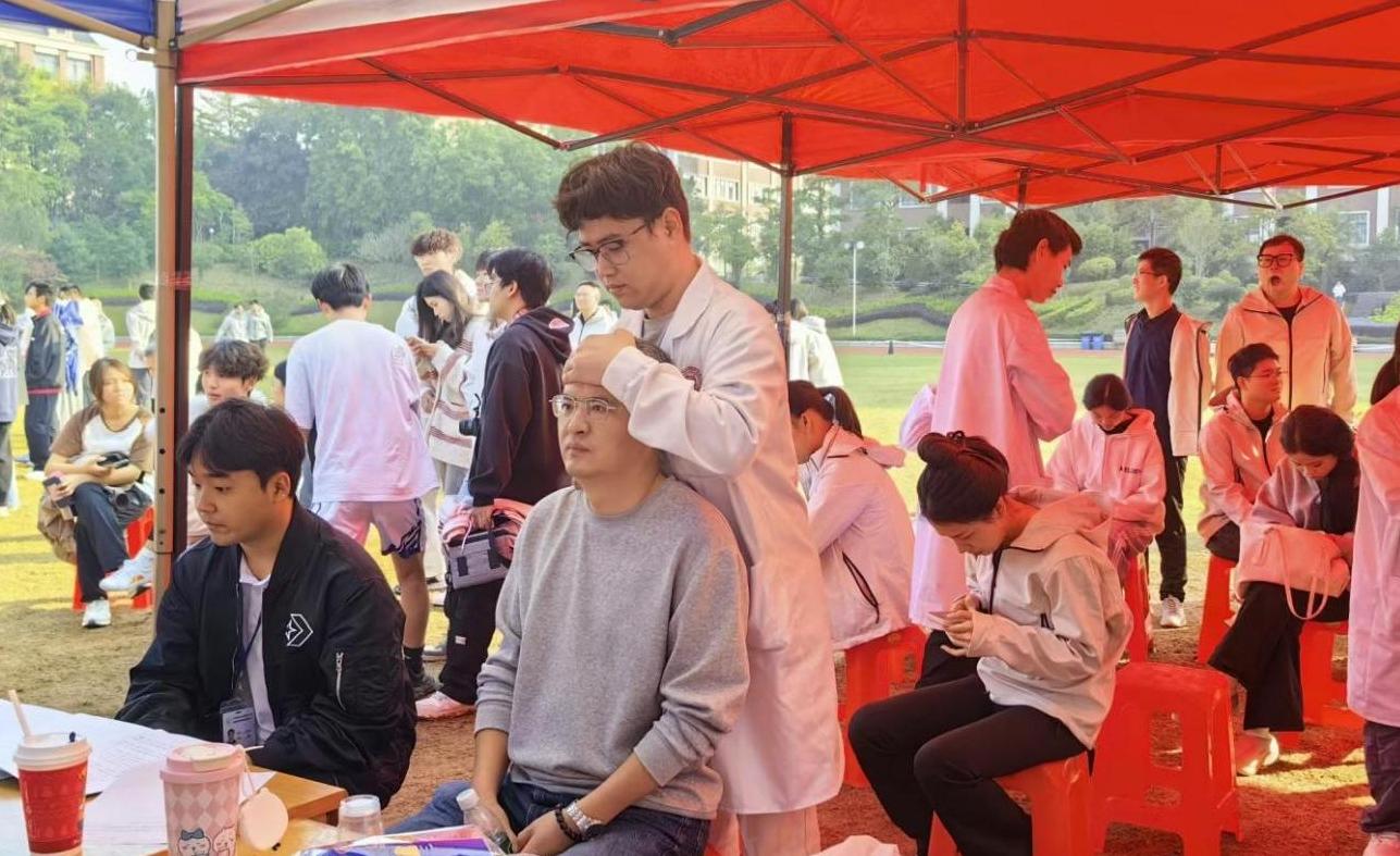 师生们热情高涨,纷纷驻足体验。刚结束长跑项目的同学在接受推拿后直呼“轻松不少”,观赛的老师也借着间隙咨询日常养生的小妙招。大家在感受中医独特魅力的同时,也对实用的保健知识有了更深入的了解。
