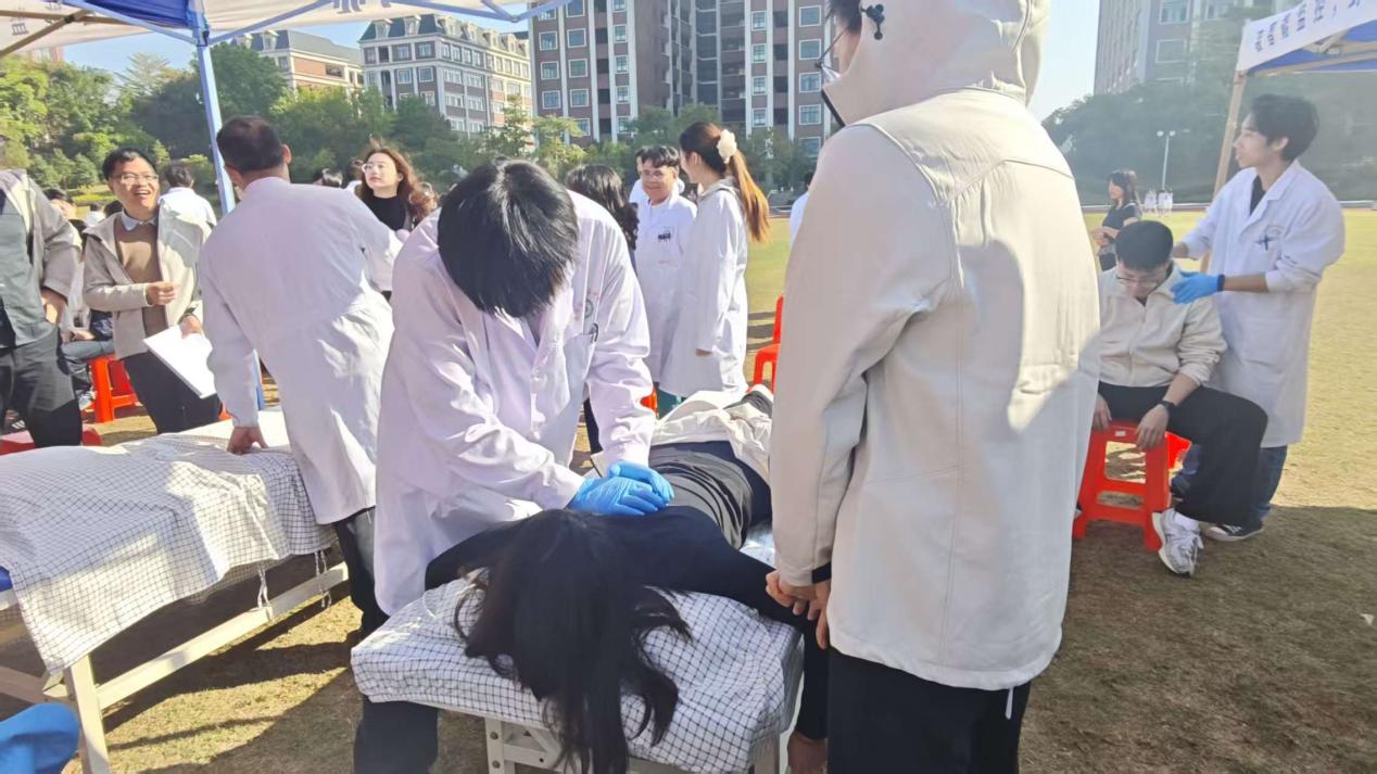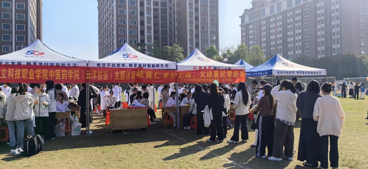 为进一步深化医校合作,提升学生实践能力,同时更好地服务校区师生,2025年12月18、19日在校园运动会火热开展之际,中医药学院云浮校区携手云安区中医院,开展一场别开生面的义诊活动,为运动健儿和观赛师生送上健康关怀。