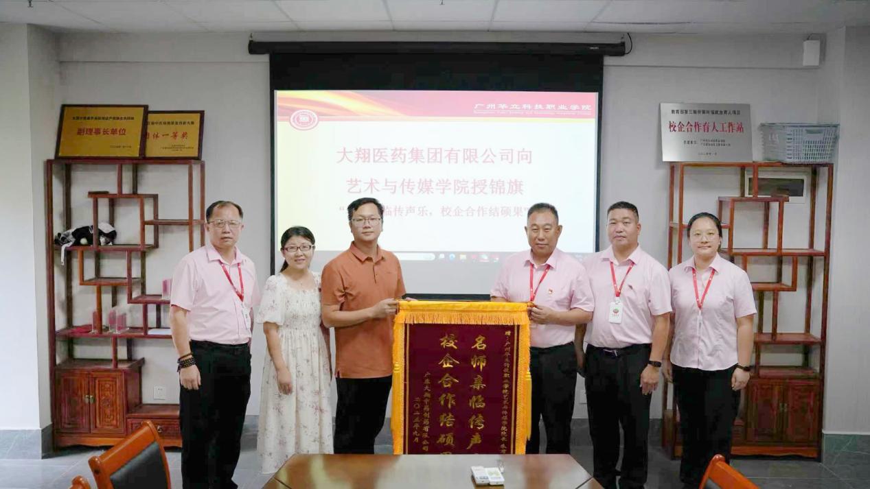 近日,广东大翔中药制药有限公司向广州华立科技职业学院发来感谢信,致谢我校艺术与传媒学院、教育学院师生团队的专业指导,助力其在“大翔集团司歌大赛”中表现优异,成为产教融合的又一成功典范。