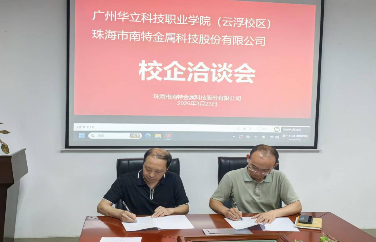为深入推进产教融合、校企协同育人,拓宽毕业生就业渠道,提升人才培养与行业需求的契合度,3月23日,电力与智能制造学院领导带队,赴珠海南特金属有限公司、东莞市松柏模具有限公司开展访企拓岗专项活动,并与两家企业正式签署大学生校外实践教学基地协议书,为实践教学改革和学生高质量就业注入新动能。