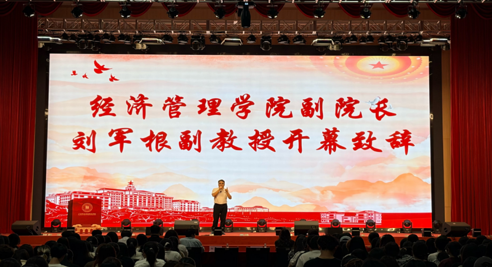 表彰大会在雄壮的国歌声中拉开帷幕。经济管理学院副院长刘军根在致辞中对全院学子寄予殷切期望。 他鼓励大家以榜样为标杆,在学习与实践中锤炼本领、勇攀高峰,将争先创优的精神融入日常学习生活的方方面面。