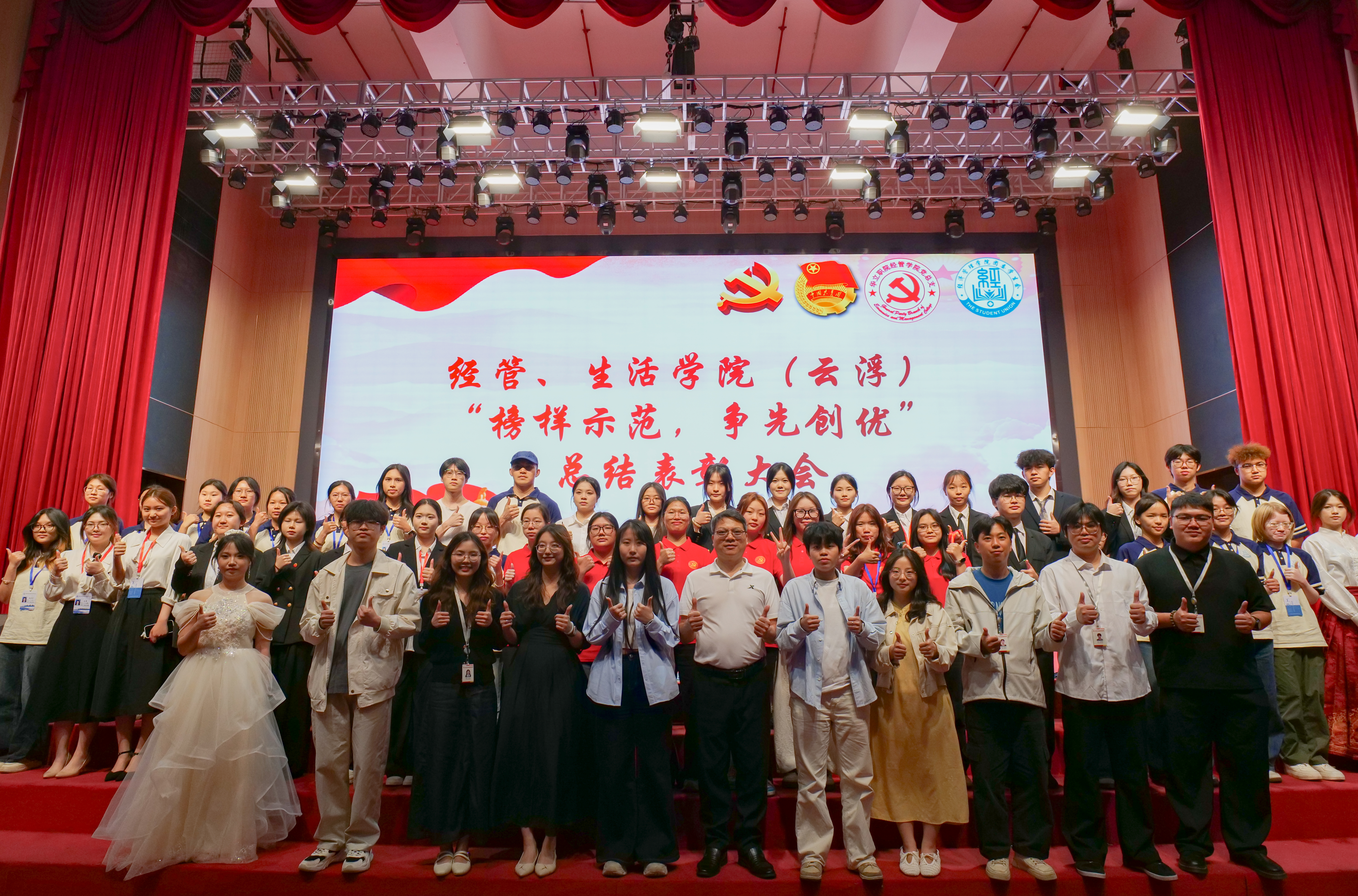 青春逢盛世,奋斗正当时。本次经管学院、生活学院“榜样示范,争先创优”总结表彰大会,既是对优秀学子过往努力的肯定与嘉奖,更是一次凝聚青春力量、激发奋进斗志的精神洗礼。未来,经济管理学院、生活学院(云浮校区)的学子们将继续以榜样为引领,把争先创优的信念内化于心、外化于行,在校园生活中书写新的青春华章,以实际行动诠释青年担当。