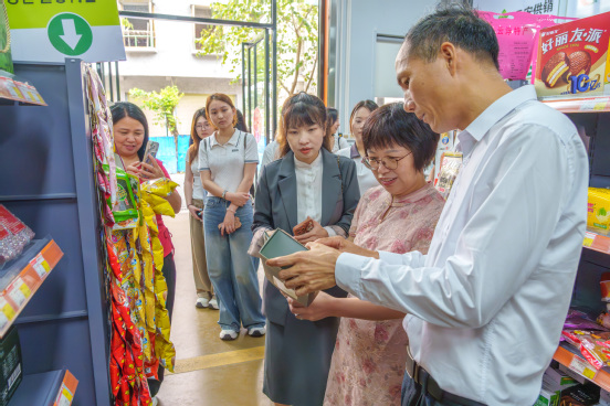 在云安区供销社相关负责人的陪同下,华立职院师生一行先后参观了供销社的供应仓库、特产超市、食品化验区及文化长廊。在供应仓库,师生们详细了解了云安区供销社在农资储备、物流配送等方面的工作流程;在特产超市,琳琅满目的云安特色农副产品——富林花生、镇安咖啡、高村火龙果、托洞腐竹、迳心茶、西江鱼干等,引起了师生们的浓厚兴趣。食品化验区内,师生们实地感受了供销社在农产品质量安全检测方面的严格把关;文化长廊中,一幅幅图片生动展示了云安供销系统服务“三农”、助力乡村振兴的奋斗历程。